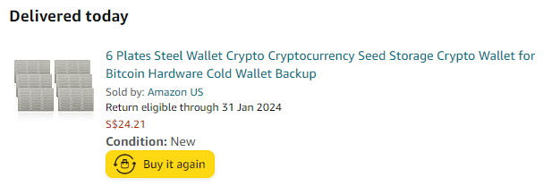 The market offers online kits for steel plate backups, but the premium prices were a turn-off. Trezor’s titanium backup system, for instance, comes at a hefty $172 for just one plate, without including a scriber or punch set. Instead, I opted for a cost-effective approach – I scoured Amazon and found a deal for six steel plates and a letter punch set for just $55.