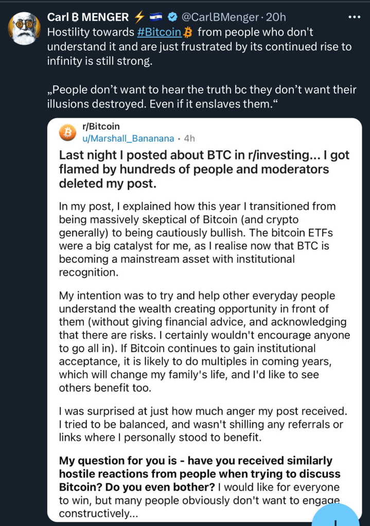 If you can’t help yourself, no one else can. This rule applies to me as well. I constantly remind myself to keep an open mind. Who knows, there might be a hard asset even better than Bitcoin in the future, and I need to be ready to pivot if that’s the right move.